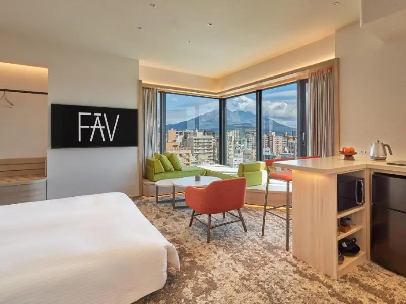 FAV LUX 가고시마 텐몬칸은 현대적인 디자인과 일본 전통의 멋이 어우러진 공간이에요. 가족 단위 여행객들이 안락하게 지낼 수 있는 세련된 객실이 준비되어 있어요.
